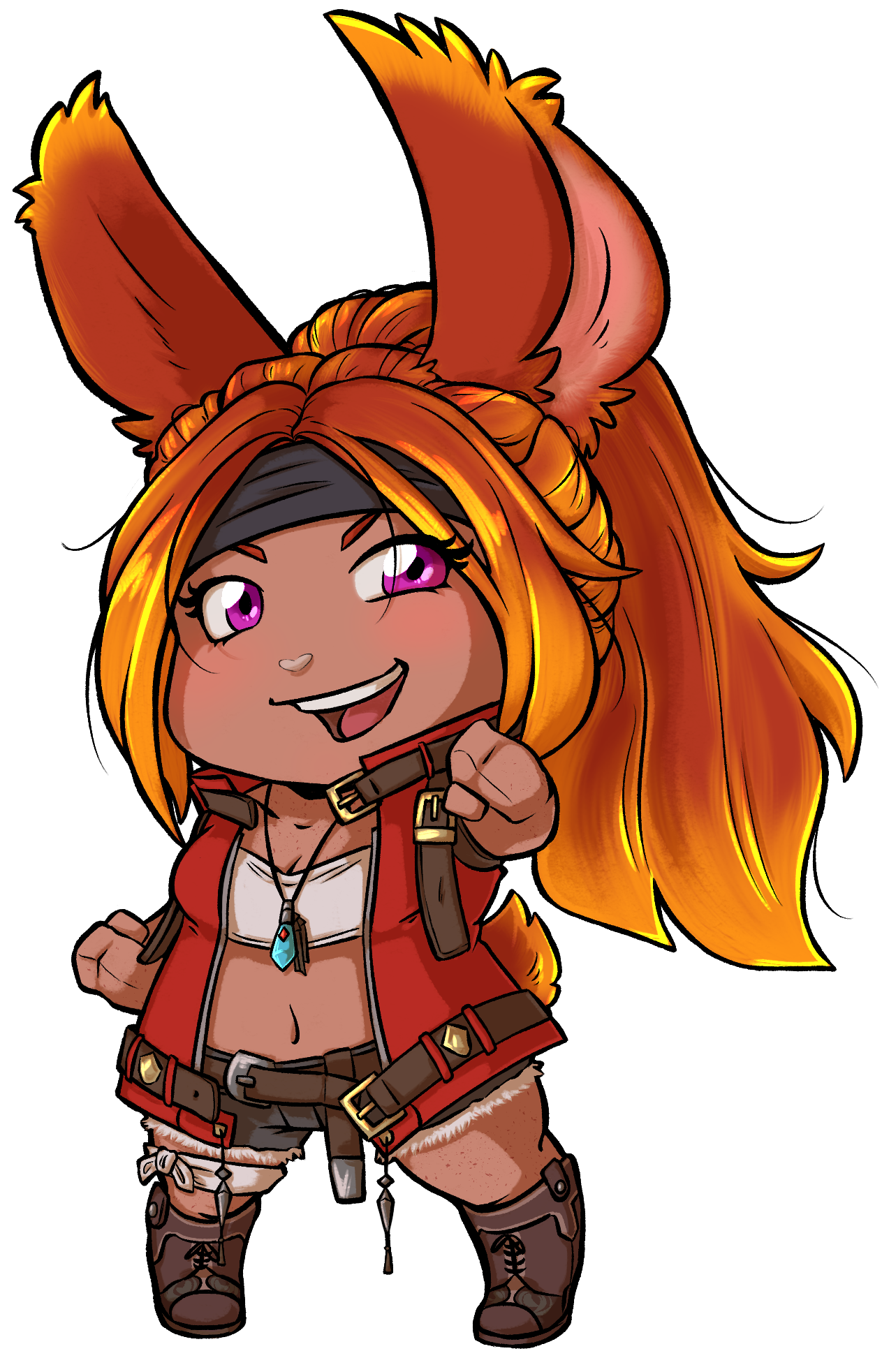 At the forefront Nico can be described as a cheerful and loving to just about anyone she stumbles upon. Unless met with rude and brash behavior from another she will treat someone as if she has known them for years--despite it only being a few minutes. Personal space? Can she eat it? Chances are she is wanting to know your life story right out of the gate.While cheerful, there are times where those close to her can see another side. She is known as 'Firecracker' for a reason, and when pushed to a point of anger, being flustered or any sort of heightened emotion will cause the Viera to release an expansion of aether around her body in the form of fire. Flames will ignite upon her body and while she is immune to the heat, she fears for those around her that may be caught in the flames.